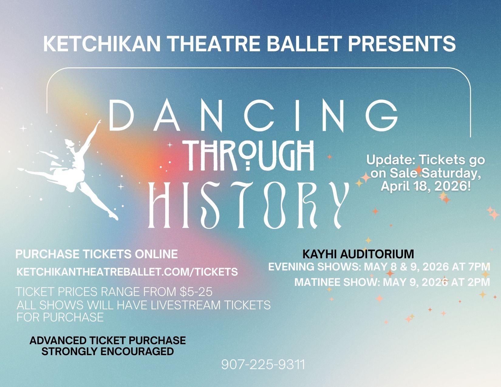 WELCOME TO KETCHIKAN THEATRE BALLET Alaska’s oldest dance studio, established in 1961 Spring Gala 2026 Tickets are LIVE Summer 2026 Class Information Coming Soon! Coming Soon - Class Registration for 2026-2027 Dance Season Coming Soon - Class Registration for 2026-2027 Dance Season